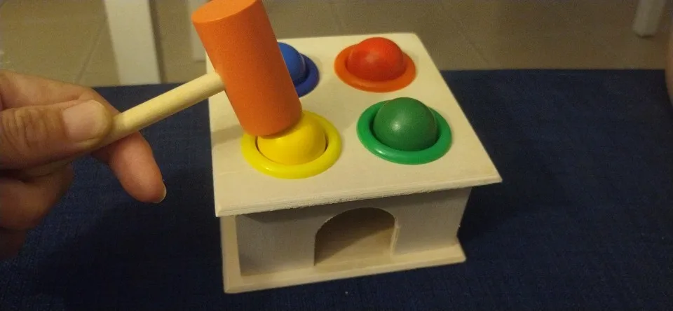 The solution: Our wooden Montessori Hammer Ball Game
