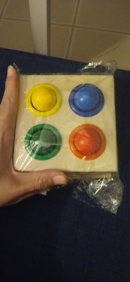 Contents: Wooden box, wooden hammer, 4 colorful wooden balls