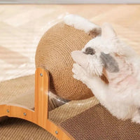 2-in-1-Kratzball für Katzen – Stilvolles Kratzspielzeug aus Massivholz & Sisal, das Krallenpflege und Spiel vereint