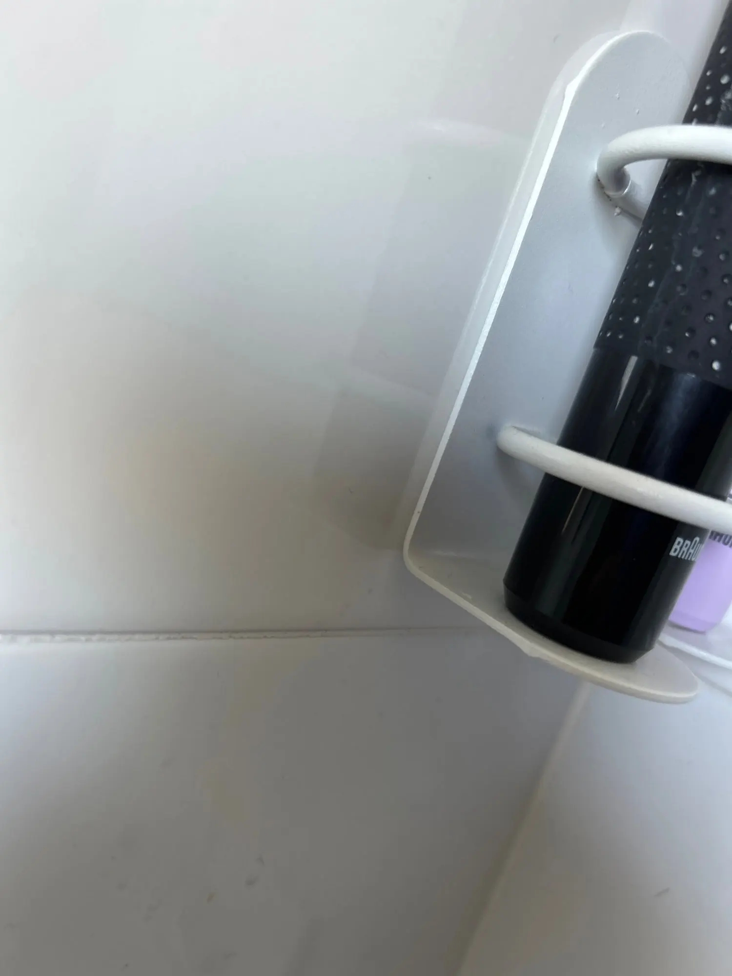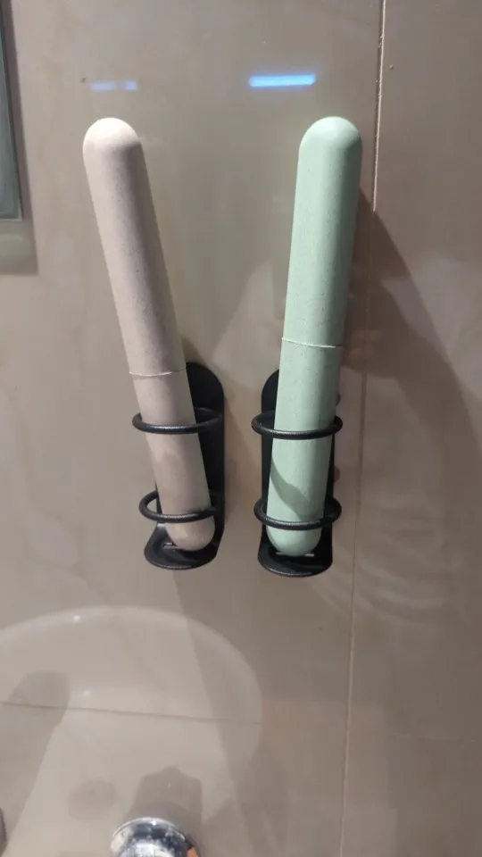 A: Der Halter bringt Ordnung ins Badezimmer — Zahnbürsten, Zahnpasta und Rasierer verschwinden von der Waschbecken‑Fläche und trocknen hygienisch an der Wand.