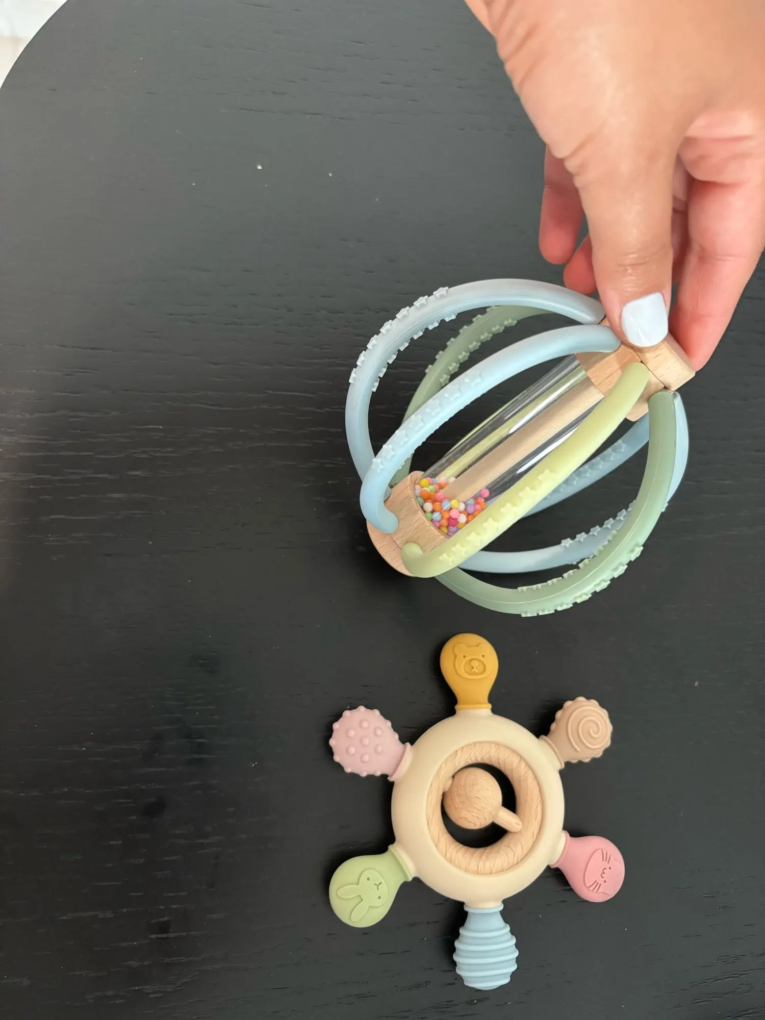Die Lösung: Unsere sensorische Baby Rassel aus Holz & Silikon