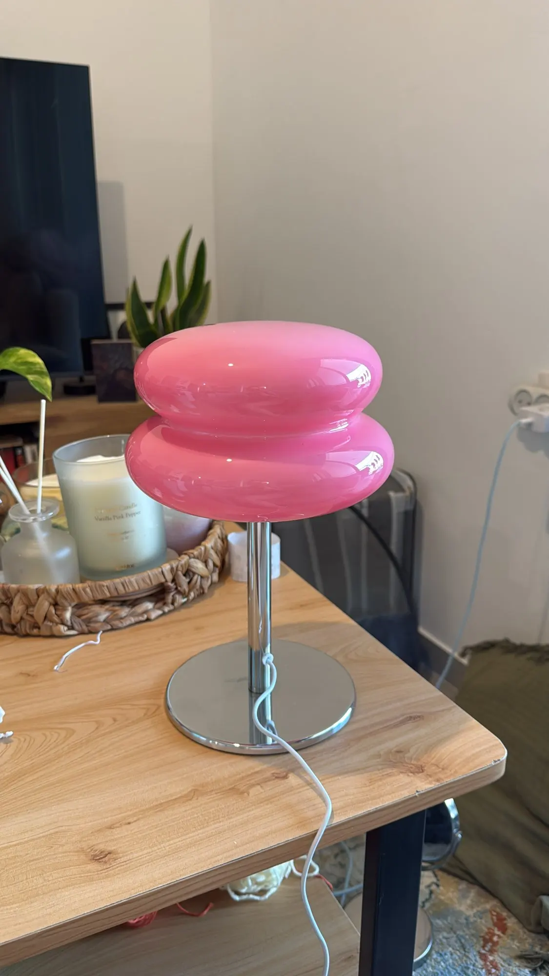 A: Die Macaron Tischlampe spendet augenschonendes, trikromatisches Licht und schafft eine stilvolle, gemütliche Atmosphäre – perfekt als Nachtlicht oder Dekoration.